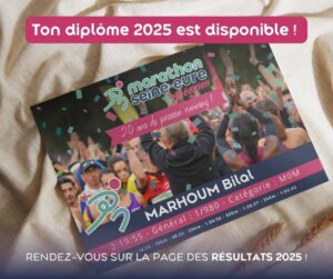 Depuis la page des classements, choisissez votre épreuve, cliquez sur votre fiche coureur et téléchargez votre diplôme !